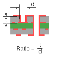 This is the minimum ratio that a blind via can be (d) as it passes through a certain thickness (t). In other words, if your passing a via through one layer and the layer thickness is 10 mils thick and the minimum blind via ratio is 0.5 then the minimum diameter of via must be 20 mils.